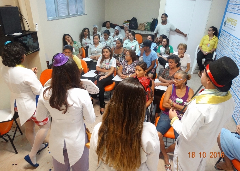 De forma lúdica e divertida, alunos do curso de Enfermagem da Universidade do Estado do Pará (UEPA), falaram um pouco mais, na tarde desta terça-feira (18/10), sobre prevenção, sinais e sintomas dos cânceres de mama e de colo do útero. A ação foi voltada aos usuários e colaboradores do Hospital Público Estadual Galileu (HPEG), em Belém e fez parte da programação da campanha “Outubro Rosa”, que que já ocorre na unidade desde o dia 10/10 e segue até o dia 26/10.