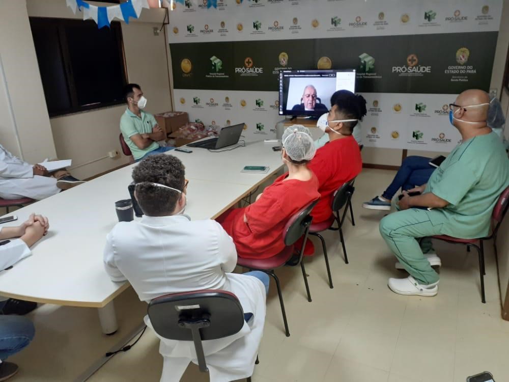 Colaboradores do Hospital Regional Público da Transamazônica, em Altamira (PA), acompanham o webinar da Pró-Saúde