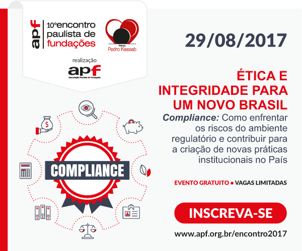 A finalidade é discutir a adesão do Programa de Integridade ou Compliance como boa prática de gestão nas Fundações e Entidades do Terceiro Setor. O evento contará com palestras de Vivian Sueiro Magalhães (AACD), José Roberto Covac (Covac Advogados), Ricardo Monello (Fenacon) e Cláudia Taya (CGU/Brasília) e Ayrton Graziolli (Promotor de Justiça).