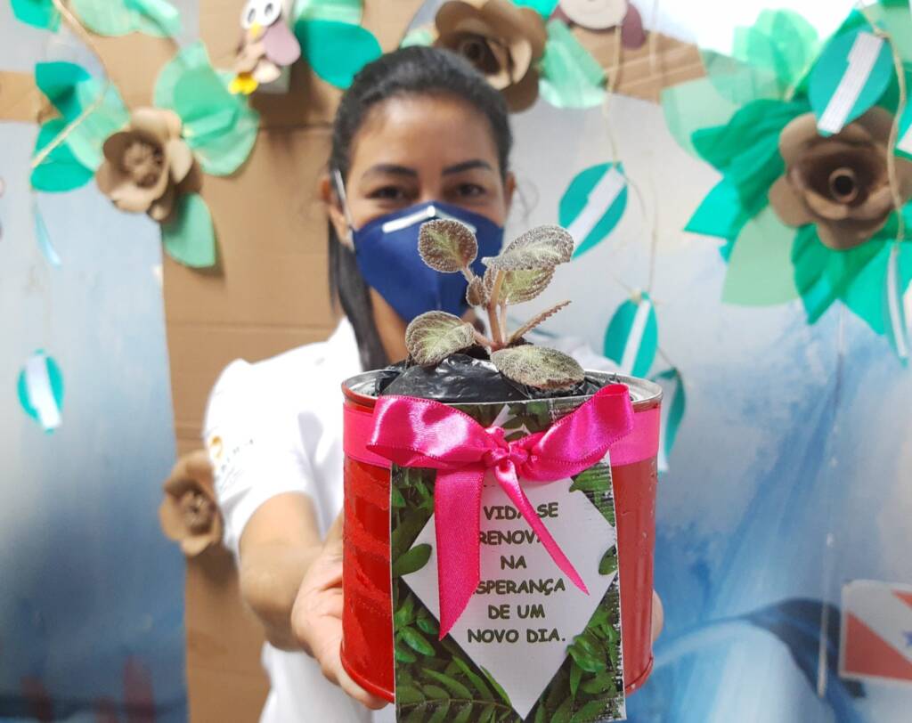 Mudas de plantas foram entregues aos profissionais como símbolo da vida. A ação faz parte do programa de sustentabilidade da unidade e será expandida para crianças que terminarem o tratamento contra o câncer