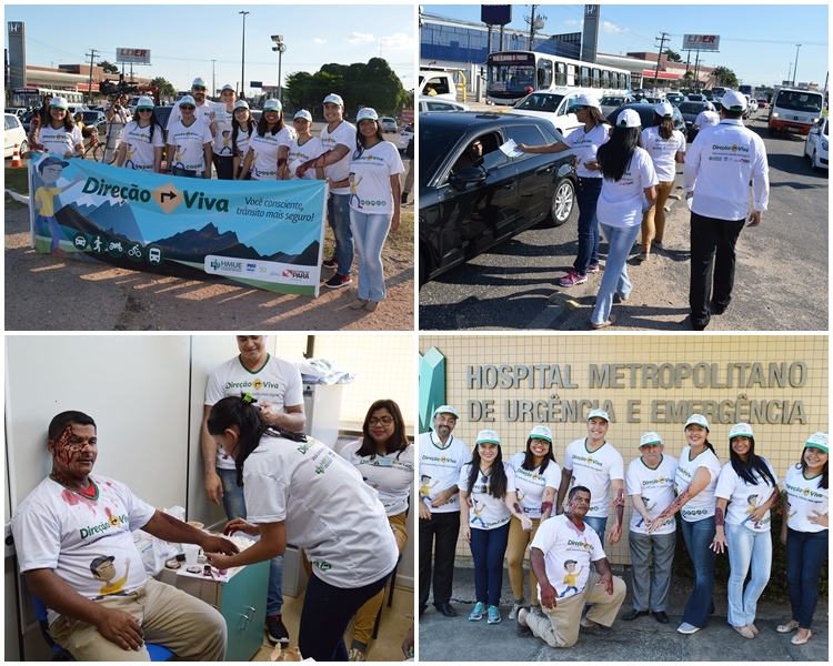 O programa 'Direção Viva' levou ação de conscientização aos condutores e pedestres que passaram pela rodovia BR-316, na Região Metropolitana de Belém (PA), rumo aos balneários do interior do Pará, nesta sexta-feira, 14/7. Colaboradores e residentes multiprofissionais do Hospital Metropolitano de Urgência e Emergência (HMUE) uniram esforços para falar da importância do uso de equipamentos de segurança e direção segura.