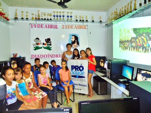 Nos dias 22 e 23 de abril os alunos do Pró-Saúde Projetos Sociais, em Agulha (SP), montaram uma apresentação de slides durante a aula de informática sobre o Dia do índio, Tiradentes e o Descobrimento do Brasil.