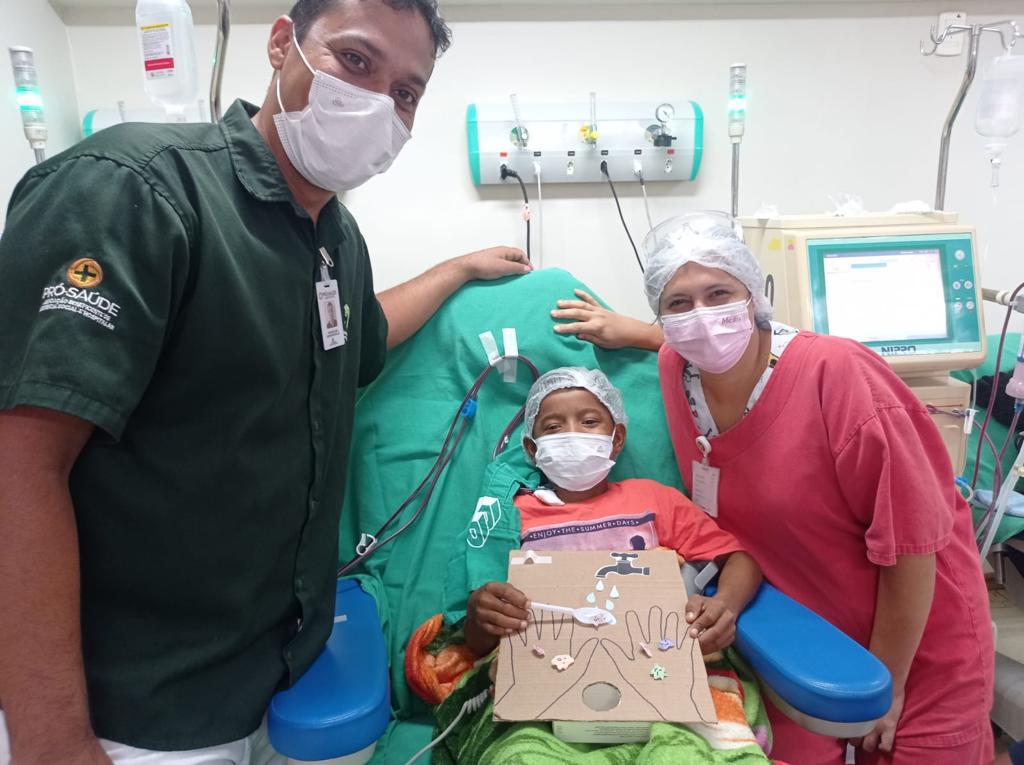 O pequeno Ezequiel Oliveira, de apenas 13 anos, paciente da hemodiálise, ficou atento observando o tabuleiro que foi criado pela equipe para orientá-lo sobre como lavar as mãos. “Foi uma maneira legal e divertida de aprender. Agora sei lavar as mãos da maneira certa e vou poder ensinar meus amigos e minha família”, conta com alegria.