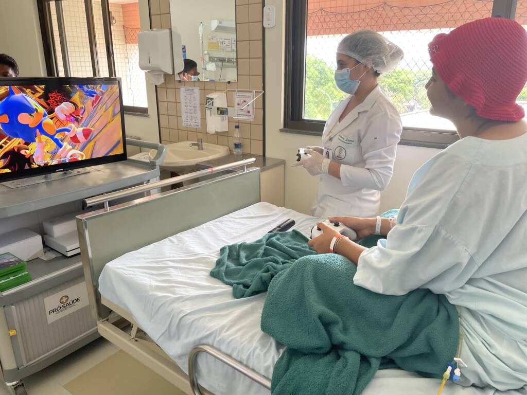 Após dois anos de paralisação por causa da pandemia da Covid-19, o Hospital Regional do Baixo Amazonas (HRBA), unidade de saúde pública do Governo do Pará, reativou, esta semana, o projeto Gameterapia. O tratamento utiliza videogame para auxiliar na recuperação de crianças e adolescentes internados.