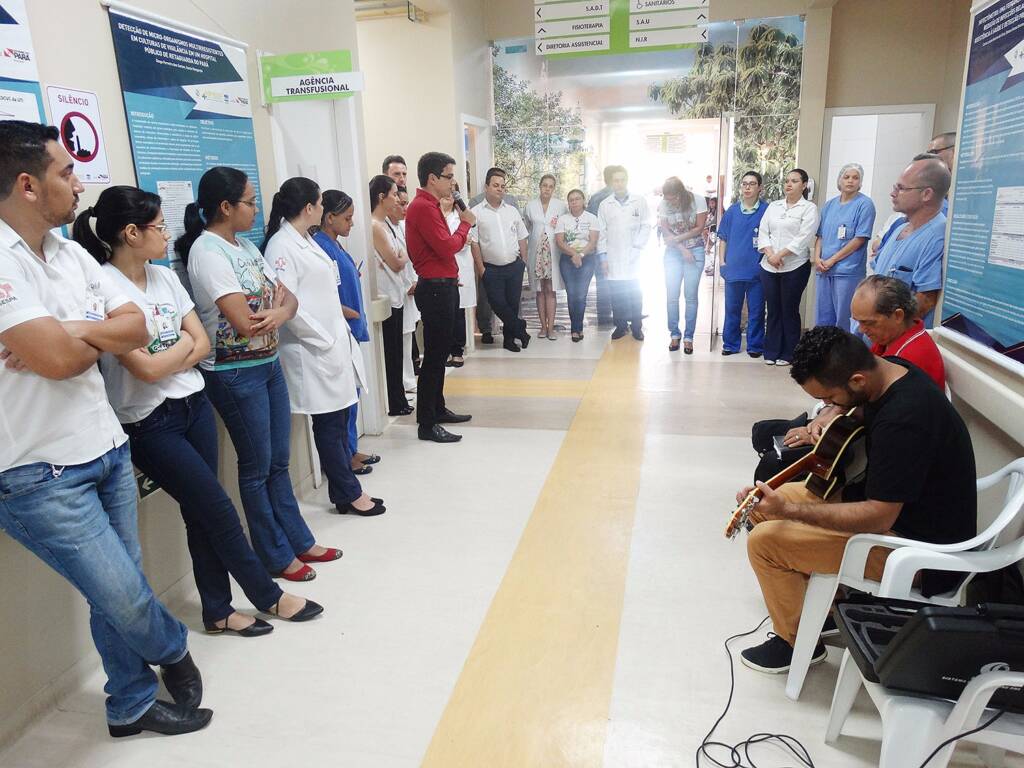 Grupos de colaboradores da unidade, que é gerenciada pela Pró-Saúde sob contrato de gestão com a Secretaria de Estado de Saúde Pública (Sespa), realizaram apresentações teatrais tendo como temas protocolos que fazem parte da rotina da instituição, como o de comunicação segura entre profissionais de saúde, cirurgia segura, identificação segura do usuário, entre outros.