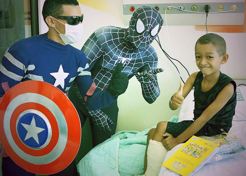 As crianças internadas na Clínica Pediátrica do Hospital Regional do Baixo Amazonas (HRBA), administrado pela Pró-Saúde em Santarém (PA), tiveram uma grande surpresa ao receberam a visita de alguns super-heróis. Além de poderem conversar com personagens como o Homem-Aranha e Capitão América, os pacientes receberam kits de higiene. A ação é fruto do trabalho voluntário do grupo “Amigos dos Anjos de Deus”.