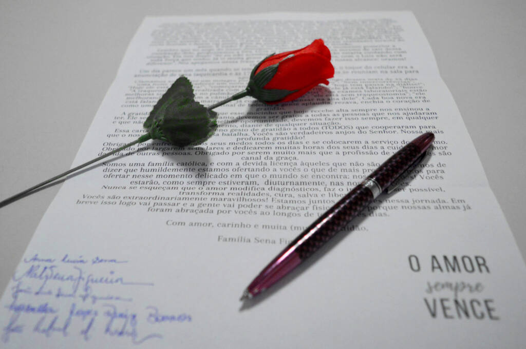 Na carta, os familiares relataram a luta pela vida e fizeram agradecimentos. “Um dia parece um mês quando se tem alguém que se ama na UTI. Essa carta é apenas um pequeno gesto de gratidão a todos que cooperaram para que o nosso amor vencesse essa batalha”, escreveram. A carta se encerra com uma mensagem de esperança: “O amor sempre vence!”.
