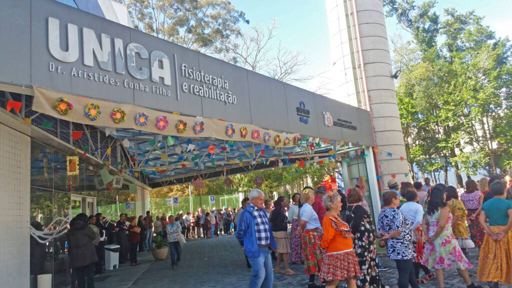 Ao som de frevo e carimbó, alunos, pacientes e convidados aproveitaram a Festa Nordestina da UnicaFisio, em Mogi das Cruzes. O evento realizado nesta quinta-feira (18) contribui para o tratamento oferecido pela estrutura, que atende idosos com idade a partir de 60 anos. A unidade, que é administrada pela Pró-Saúde Associação Beneficente de Assistência Social e Hospitalar, tem foco na reabilitação e fisioterapia, além de disponibilizar academia, oficinas de artesanato e da memória.
