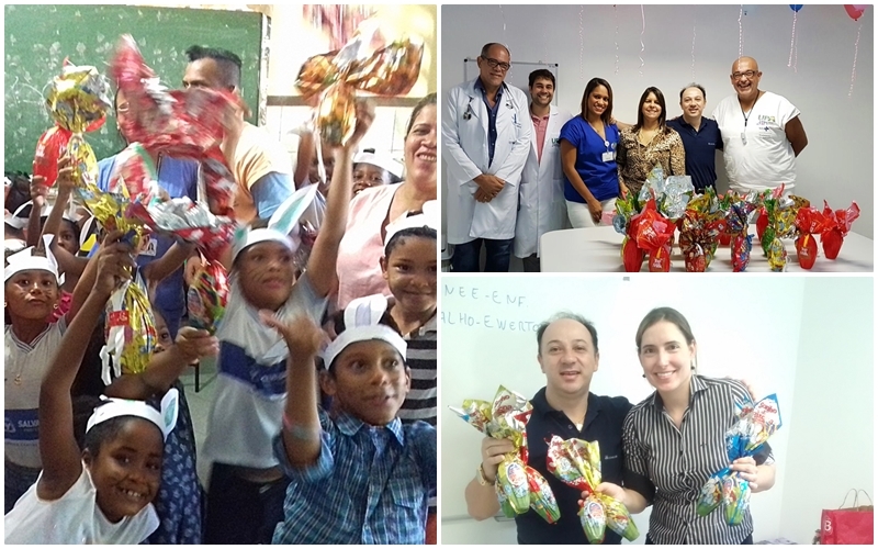 No dia 12/4, a equipe da UPA 24h Valéria distribuiu ovos de Páscoa na Escola Municipal Professor Milton Santos, que fica no mesmo bairro em que a unidade de saúde, em Salvador (BA).