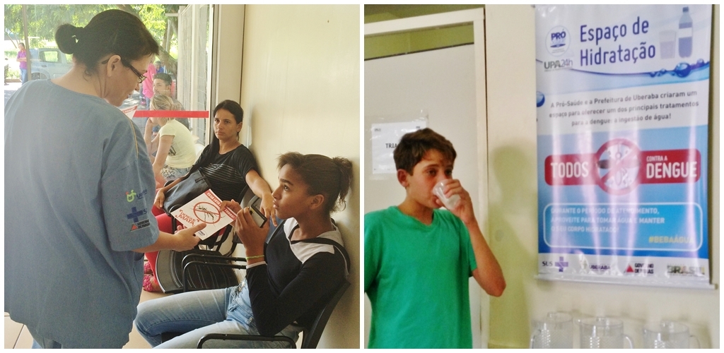 A hidratação é uma medida simples e que pode salvar vidas quando se trata da dengue, doença transmitida pela picada do mosquito Aedes Aegypti. A principal complicação da dengue é a desidratação grave. Por isso, as Unidades de Pronto Atendimento (UPAs) 24h do Mirante e São Benedito, em Uberaba (MG), implantaram um espaço de hidratação oral para ressaltar a importância de beber água para evitar que a doença se agrave.