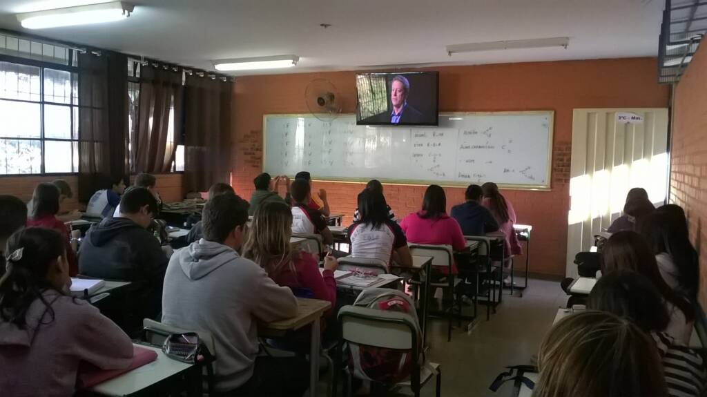 Aproximadamente 40 alunos do último ano do Ensino Médio da Escola Estadual Vinte de Outubro, de Santa Helena de Goiás (GO) assistiram ao filme “A verdade inconsciente”, de Davis Guggenheim. A apresentação da produção audiovisual é mais uma atividade da Campanha de Mês Ambiental criada pela Comissão de Gerenciamento de Resíduos com o apoio da Comissão de Humanização, ambas do Hospital de Urgências da Região Sudoestes (Hurso).