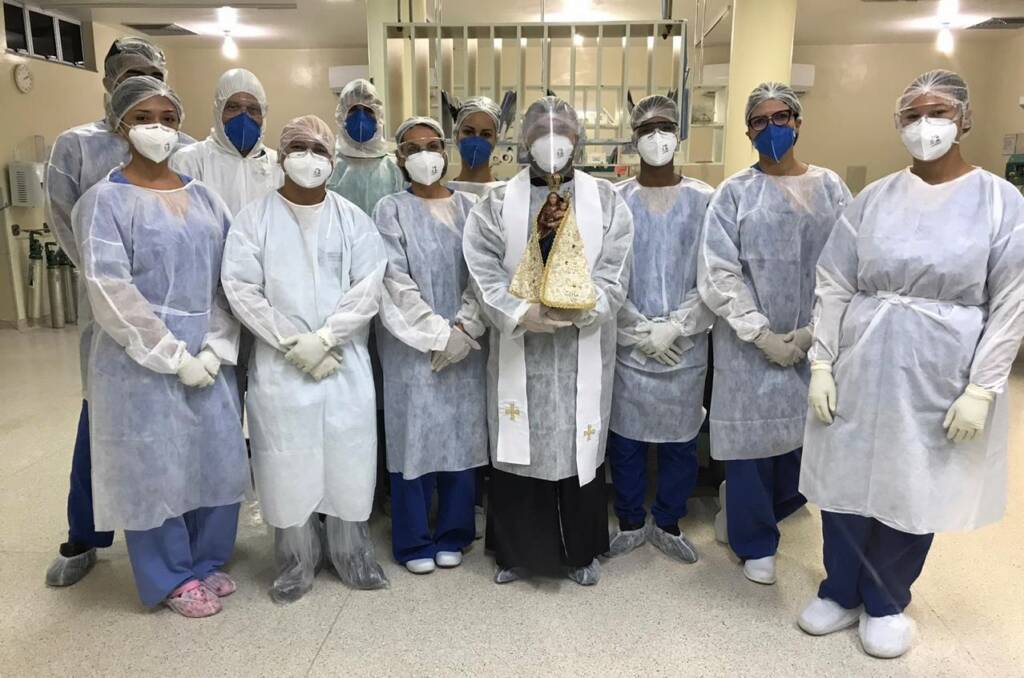 A “Rainha da Amazônia” levando fé e esperança, abençoou a Unidade de Terapia Intensiva (UTI), que cuida exclusivamente dos casos mais graves do novo coronavírus.