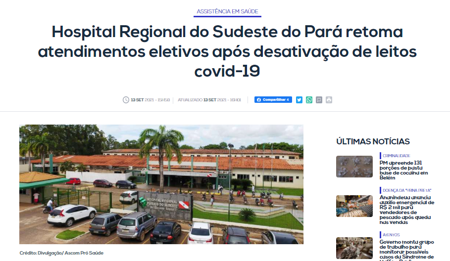 Durante um ano e meio a unidade foi a principal referência no atendimento dos casos graves do novo coronavírus. Nesse período, mais de 500 pacientes foram recuperados da doença Com a queda nos casos relacionados com a Covid-19, o Hospital Regional do Sudeste do Pará – Dr. Geraldo Veloso (HRSP), em Marabá, desativou os leitos