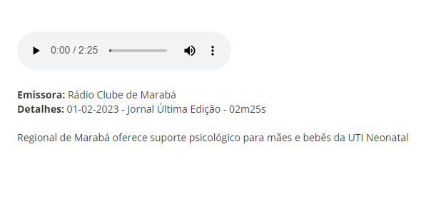 Rádio Club Marabá – Regional de Marabá oferece suporte psicológico para mães e bebês da UTI Neonatal