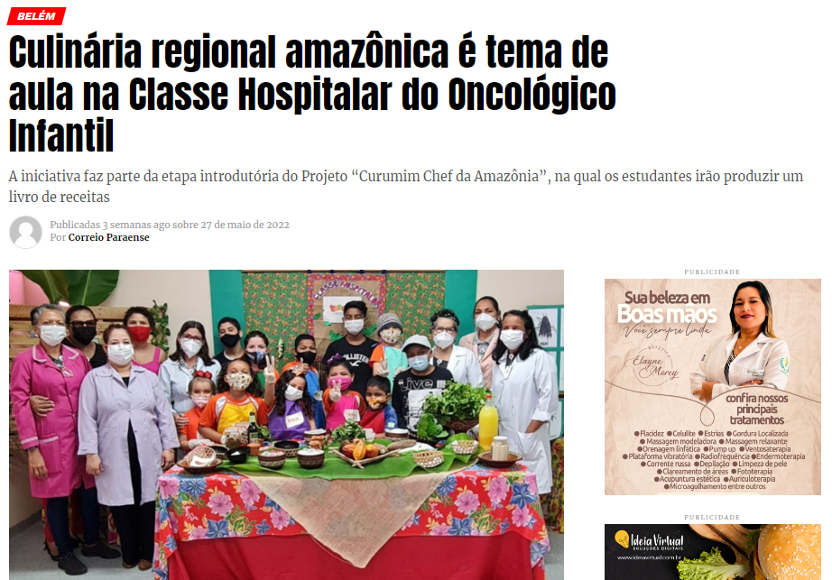 Correio Paraense – Culinária regional amazônica é tema de aula na Classe Hospitalar do Oncológico Infantil